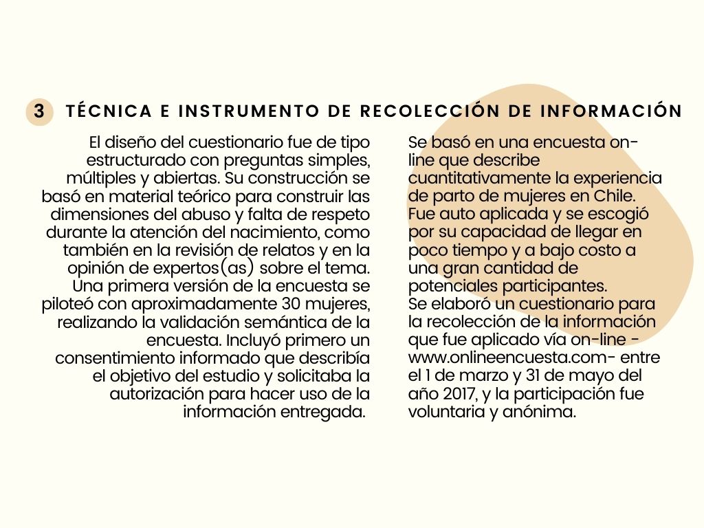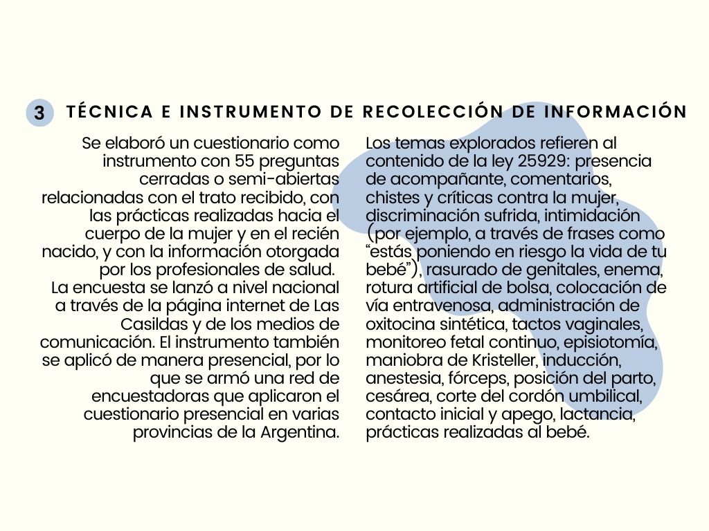 Uno de los instrumentos más poderosos utilizados son las encuestas: herramientas de la investigación que permiten obtener datos cualitativos y cuantitativos (cifras y testimonios) en los diferentes niveles de atención a los procesos del cuerpo de las mujeres.